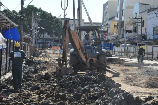 Nesta segunda-feira (13), funcionários trabalhavam na preparação do terreno onde ficava uma rua paralela aos dois prédios, para que as últimas estacas sejam colocadas, além da preparação das colunas, que vão receber ao longo de todo o prédio a estrutura metálica para a instalação da cobertura que vai garantir a todos um local ideal para as vendas.