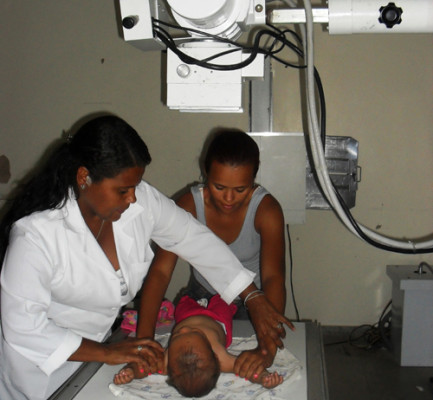 Atendimento sem marcação - Vanessa de Souza Pinto, 19 anos, moradora de Dores de Macabu, foi ao hospital levando a filha, de oito meses, que estava gripada. O tórax do bebê foi rapidamente radiografado. Vanessa não encontrou nem fila de espera. “O atendimento é bom e as pessoas são atenciosas. Se tivesse que pagar, seria difícil”, avaliou a mãe, que deixou o hospital levando o exame para casa.