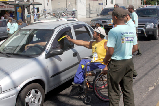Cadeirantes da Organmização Não Governamental (ONG) Esportes sem Fronteiras, com auxílio de guardas municipais e guardas mirins, participaram de uma ação de conscientização na manhã deste sexta-feira (24), na Avenida Nelson de Souza Oliveira, em frente ao Campos Shopping, no Centro. Foram distribuídos panfletos com o slogan “Seja Legal no Trânsito”, com orientações de como os motoristas devem colaborar para um trânsito melhorar na cidade.