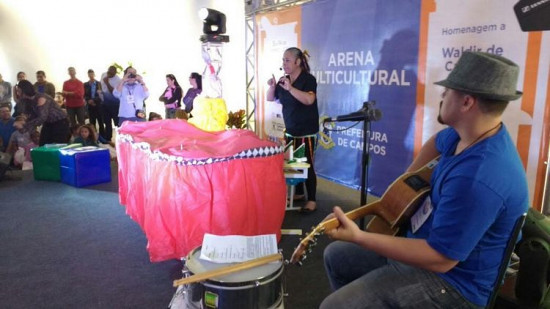 A Arena Multicultural, na 9ª Bienal do Livro de Campos, foi invadida por crianças, adolescentes e adultos, nesta sexta-feira (12), para assistir à história do livro Rainha Ray a, contada e encenada pelas animadoras culturais Eliana Carneiro e Roberta Givigi, ao som do violão com Felipe Martins. A apresentação também contou com a presença das autoras, Carmen Eugênia Sampaio e Sylvia Paes, que lançaram o livro nesta bienal.