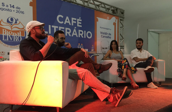 Três grandes poetas da atualidade lotaram o Café Literário na noite deste domingo (14), último dia da 9ª Bienal do Livro de Campos. Falando sobre a ferramenta que os tornou ainda mais populares, Saulo Pessato, Zack Magiezi e Lucão contaram como as redes sociais influenciam seus trabalhos. O encontro foi mediado pela presidente da Fundação Cultural Jornalista Oswaldo Lima, Patrícia Cordeiro.