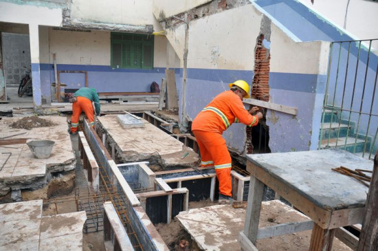 As obras estão em fase de colocação de vigas no térreo, para construção da laje, segundo um dos fiscais da Secretaria Municipal de Infraestrutura e Mobilidade Urbana, Marcelo Freitas.