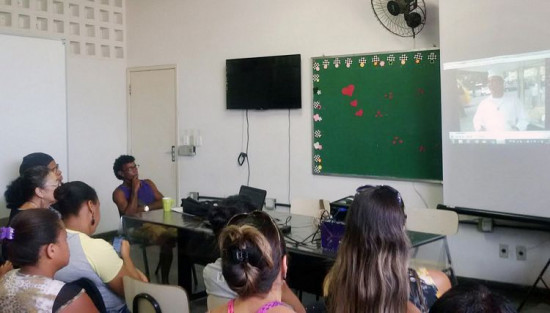 Alunos dos cursos de padaria, manicure, cabeleireiro, serigrafia e cartonagem do programa assistiram à palestra, ministrada de manhã e à tarde para atender a todos que fazem os cursos em dias e turnos diferenciados.