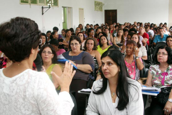 A primeira dama, Nélia Nahim, e a Secretária Municipal de Educação, Joilza Rangel Abreu, participaram nesta sexta-feira (1º), da reunião com os diretores da rede municipal. O encontro aconteceu no auditório da secretaria, quando foram anunciadas ações que serão realizadas este mês, entre elas, liberação das escolas que serão utilizadas como locais de votação, programações do Mês da Criança, no dia 12, e do professor, no dia 15, além do início do processo de pré-matrícula da rede, entre outros.