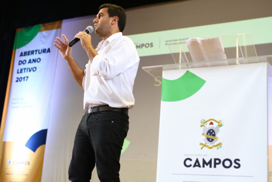 O prefeito Rafael Diniz esteve nesta quarta-feira (15) no Centro de Convenções da Universidade Estadual do Norte Fluminense Darcy Ribeiro (Uenf) para dar as boas-vindas aos diretores de creches e escolas da rede municipal de ensino de Campos. O encontro, organizado pela secretaria municipal de Educação, Cultura e Esportes (Smece), abriu oficialmente o ano letivo de 2017, com a participação do secretário da pasta, Brand Arenari; da subsecretária geral, Luciana Eccad, e a nova equipe de gestão. O responsável pela pasta falou sobre as novas propostas, incluindo as medidas que foram tomadas para dar maior resolutividade às demandas das unidades, através da criação de subsecretarias estratégicas. Na próxima sexta-feira (17), a acolhida será com professores da rede municipal, em dois horários: das 10h às 12h e das 14h às 16h.