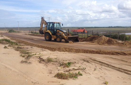 Começa limpeza de trecho da pista atingido por ressaca do mar