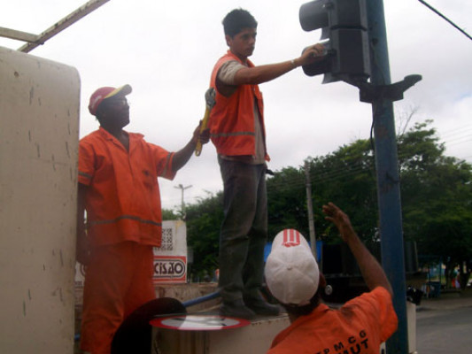 Emut trabalha na manutenção de semáforos na cidade