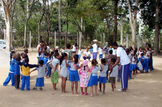 Crianças participam de atividades esportivas e ambientais