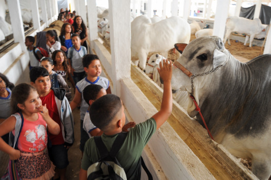 quinta-feira (13). Bois e cavalos conquistaram a atenção das crianças. A