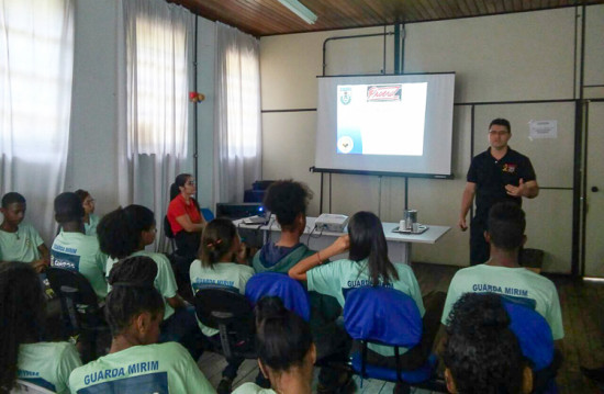 Utilizando imagens de casos reais que circulam na internet, policiais militares mostraram aos jovens que o efeito do uso de drogas é devastador, além de causar danos à saúde, ainda está diretamente ligado à prática de crimes.