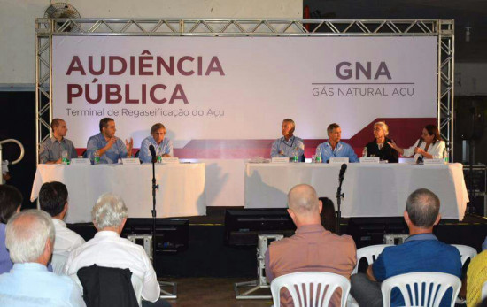 O superintendente de Planejamento, Marcel Cardoso, e o superintendente adjunto de Pesca e Aquicultura, José Armando Barreto, participaram nesta quinta-feira (14) da audiência pública, realizada pela Comissão Estadual de Controle Ambiental (Ceca) no Grussaí Praia Clube, em Grussaí, São João da Barra. No evento foi apresentado o Relatório de Impacto Ambiental (Rima) com relação ao requerimento da licença prévia para implantação do terminal portuário de importação e regaseificação de gás natural liquefeito (GNL) no Porto do Açu.