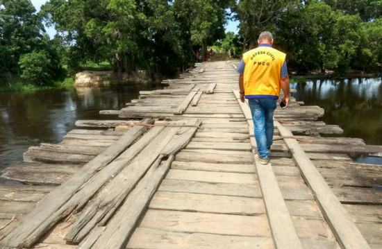 Estrutura apresenta riscos. Viaduto da Estrada dos Ceramistas é uma alternativa à ponte, que foi interditada com aterros e cercas nas cabeceiras.