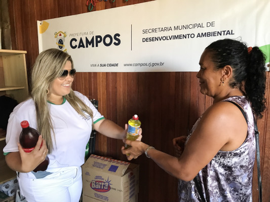 Dezenas de pessoas compareceram neste sábado (20) ao stand da Secretaria Municipal de Desenvolvimento Ambiental (SMDA), em Farol de São Thomé, para troca de óleo de cozinha usado por detergente. No programa da secretaria, quem entrega dois litros de óleo, recebe um frasco de 500ml de detergente.