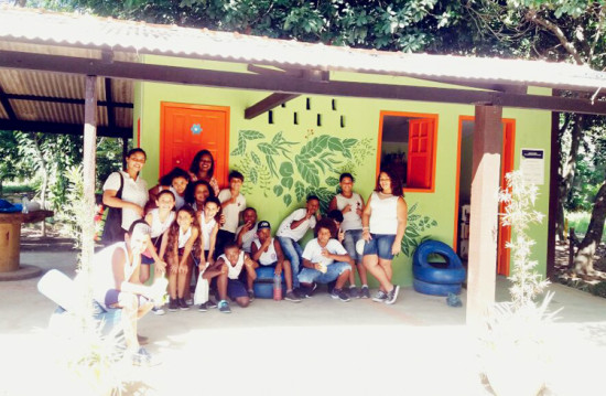 Alunos de escola de Nova Brasília em aula ao ar livre no Horto