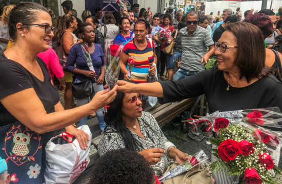 A vice-prefeita Conceição SantAnna, a mãe do prefeito Rafael Diniz, Beatriz Barbosa Diniz; e a avó, Zaíra Paes Barbosa, foram homenageadas na manhã desta quinta-feira (8), Dia Internacional da Mulher, em solenidade realizada pela Câmara de Dirigentes Lojistas (CDL) e Polícia Militar (PM). No evento, no Boulevard Francisco de Paula Carneiro, no Centro, com mais seis homenageadas especiais, foram distribuídas 350 rosas vermelhas a mulheres que passavam pelo local.