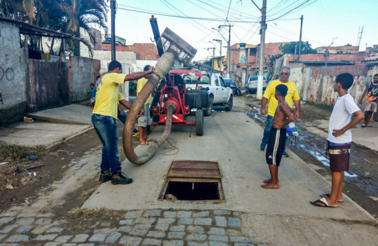 Prefeitura atua no Santa Rosa e água é drenada das ruas