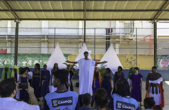 Um grupo do Semeando Arte emocionou aos presentes ao encenar a Paixão de Cristo, revivendo a morte e a ressurreição de Jesus. Logo em seguida, o pastor Josimar Lisboa, da Igreja Adventista do Sétimo Dia, conversou com as crianças e adolescentes sobre o significado da Páscoa.