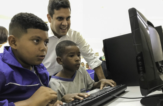 O prefeito Rafael Diniz reinaugurou oficialmente, nesta quarta-feira (4), o laboratório de informática da Escola Municipal Manoel Ribeiro do Nascimento, na Tapera, um dos 30 reativados pela Secretaria municipal de Educação, Cultura e Esporte (Smece) este ano. Até o final do semestre a meta é chegar a 50 laboratórios ativos e, até dezembro, serão mais de 100. Os espaços ficaram fechados por quase oito anos.