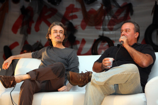 O escritor e jornalista Guilherme Fiúza e o cantor e compositor João Estrella estiveram neste domingo (07) à tarde, na 6ª Bienal do Livro de Campos, na Arena Cultural, participando do debate: “Violência e drogas: um roteiro previsto?”. O mediador da mesa foi o jornalista Marcos Curvello.