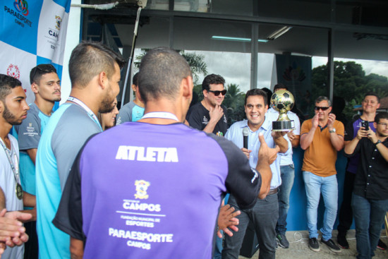 Na noite de quarta-feira (25), os atletas do Paraesporte foram homenageados na Câmara Municipal de Campos. O coordenador do Paraesporte, Fábio Coboski, e o presidente da Fundação Municipal de Esportes (FME), Raphael Thuin, também participaram da solenidade.