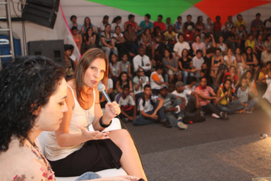 A Arena Cultural na 6ª Bienal do Livro de Campos, montada na Praça São Salvador, lotou na tarde desta quarta-feira (10), com o bate-papo entre a sexóloga Laura Müller e a filósofa Márcia Tiburi. Formado especialmente por adolescentes e jovens, o espaço ficou pequeno e o tempo de duração também, tamanha a quantidade de perguntas para as convidadas que, por mais de uma hora e meia, misturaram filosofia e sexologia, de forma harmoniosa e descontraída.