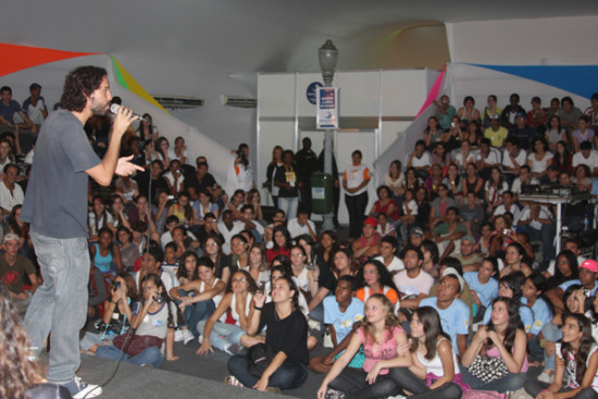 O rapper e escritor Gabriel O Pensador participou nesta quinta-feira (11) de um encontro sobre “Poesia e Rap”, na Arena Cultural, com o grande público jovem presente na 6ª Bienal do Livro de Campos. Na oportunidade, Gabrie falou sobre seus livros “Diário Noturno”, de poesias, e o infantil, “Um garoto chamado Rorberto”.