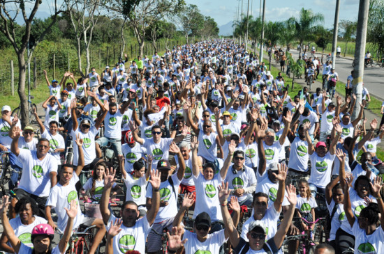 Cerca de 2.500 pessoas entre crianças, adolescentes, adultos e idosos de Campos e de cidades vizinhas participaram neste domingo (27) do II Passeio Ciclístico “Pedalar é Legal”, uma parceira entre a Fundação Municipal de Esportes (FME) e a TV Record. O evento mostrou que a bicicleta tem uma tradição no município e que boa parte da população usa o meio de transporte para ir trabalhar, fazer uma atividade física ou simplesmente para passear. O dia de sol abrilhantou ainda mais o passeio, que ia chamando a atenção por onde passava.