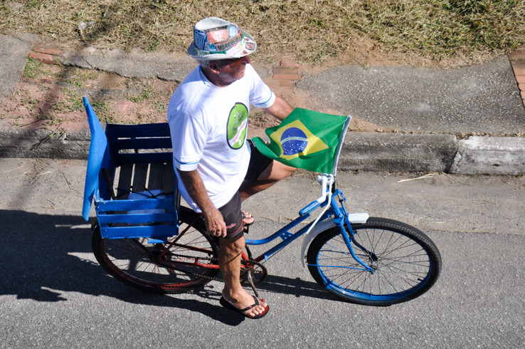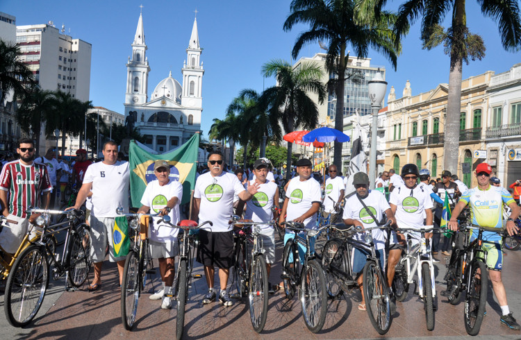 O pintor Sérgio Luiz Menezes e o amigo Josuel Lopes Viana ornamentaram as suas bicicletas e já entraram no clima da Copa do Mundo. Eles marcaram presença no evento, que teve concentração na Praça São Salvador, saindo em direção ao Via Esporte Arthur Bernardes. Foram cerca de 8km de percurso e muita alegria e segurança. Equipes de moto da Guarda Municipal seguiam na frente para garantir com segurança a passagem de mais de 2.500 ciclistas, assim como equipe médica da Secretaria Municipal de Saúde.