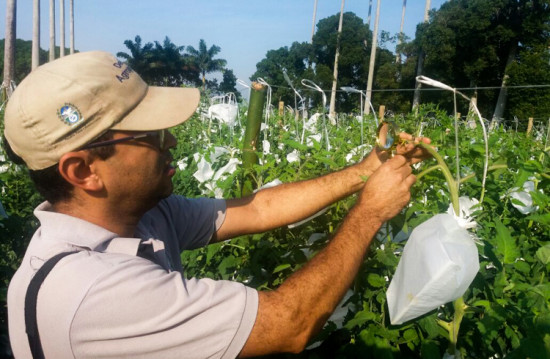 O engenheiro agrônomo Evaristo Mesadina, da Defesa Sanitária Vegetal, órgão da Defesa Agropecuária, ligada à Secretaria Estadual de Agricultura, visitou na quinta-feira (14) a área do primeiro plantio de tomate de mesa do sistema Tomatec no município, na Fazenda Santa Helena, na localidade de Santa Cruz. Ele foi orientar sobre como utilizar o “manejo integrado de pragas”, com o objetivo de manter o plantio na condição de “sustentável”, filosofia do programa da Embrapa Solos-RJ.