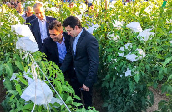 O ponto alto da estada do ministro foi a visita a primeira unidade de produção do projeto Tomatec, desenvolvido pela Embrapa Solos RJ, com mil pés cultivados na Fazenda Santa Helena, do produtor Wando Alves, na localidade de Santa Cruz. Em uma estrutura com tenda ao lado da lavoura, o prefeito falou sobre a iniciativa para diversificar a economia do município e agradeceu a visita.