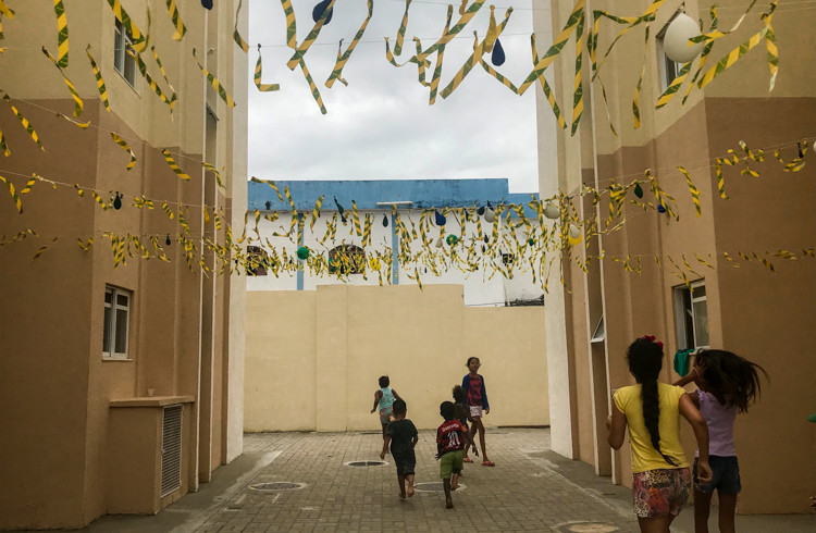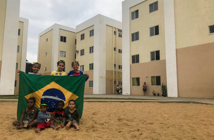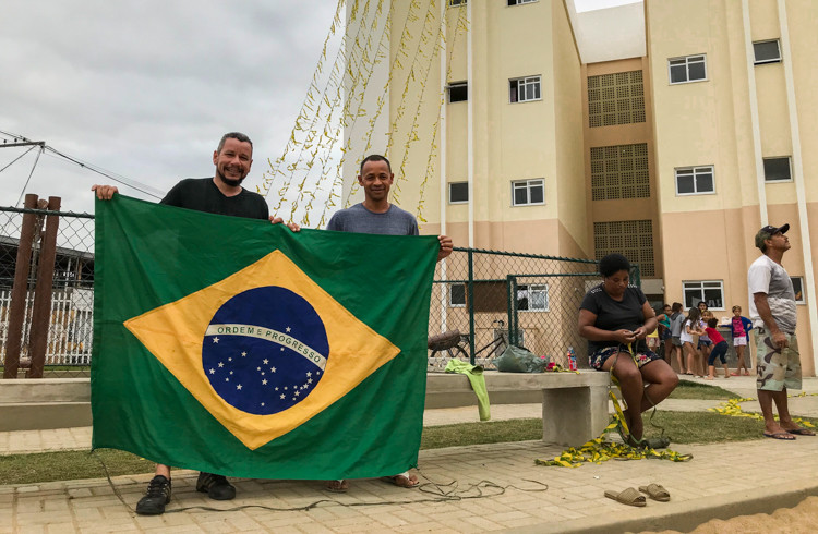 Dividindo os custos e buscando doações, eles conseguiram cerca de 2 mil bandeirinhas verde-amarelas para decorar os prédios e a praça. Uma TV foi colocada na área de convívio para que todos comemorem juntos os gols da Seleção. Uma realidade que parecia distante na Copa de 2014, quando algumas famílias tiveram de assistir aos jogos amontoados no único cômodo da casa paga via Aluguel Social.