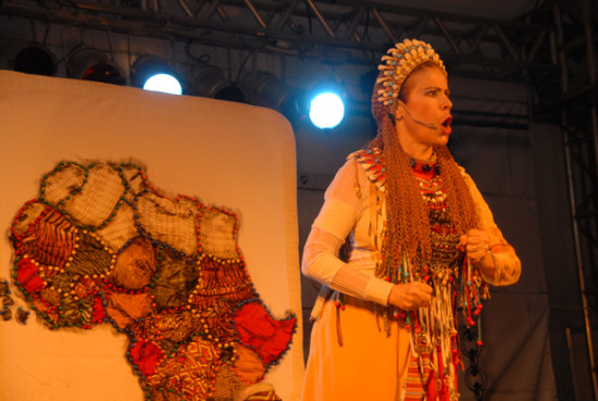 A montagem apresentou contos, mitos, lendas e histórias da tradição oral Africana, num trabalho de pesquisa que reúne nove histórias, de diferentes regiões da África, numa geografia não cartográfica, mas afetiva, religiosa e de tradições. A criançada que lotava a tenda interagiu com Priscila, cantando, batendo palmas e subindo a placo para dançar.