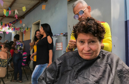 As alunas colocaram em prática as técnicas vistas em sala de aula, além de oferecer um dia especial de beleza às mulheres da comunidade
