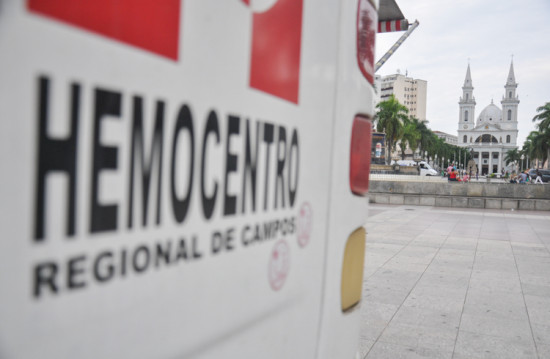 Ônibus do Hemocentro na Praça do Santíssimo Salvador nesta quinta