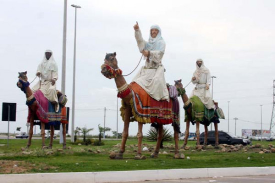 O projeto da artista plástica Dilma Carvalho, de Volta Redonda, empolga e surpreende pela perfeição das imagens e, principalmente, pelo tamanho. Os reis montados nos camelos ficam a quase quatro metros do solo. Na representação, os reis se aproximam do lugar onde nascera o Menino Jesus, numa estrebaria de Belém.