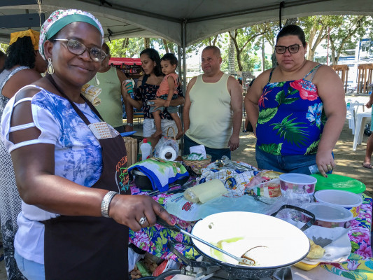 - É a primeira vez que venho e achei muito interessante - elogiou a aposentada Enilda Barreto, de 73 anos, ao lado da amiga Edna Fernandes, 58, após terminar um lanche comprado na barraca quilombola. "Também gostei muito. É mais uma opção para o visitante", completou. E quem experimenta a culinária baiana, também aprova. "Muito bom. Trouxe meu filho Yan, de 11 anos, e aproveitei", disse a vendedora Mariana Aguiar, 40. "A feira já está consolidada. Graças a Deus, a cada dia, tenho mais fregueses", diz a baiana Rita Souto.