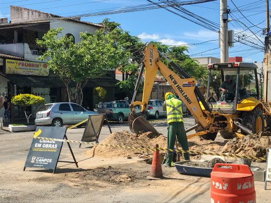 Trabalho de recuperação de asfalto e reparos no sistema de drenagem ocorre em diversos pontos da cidade simultaneamente.
