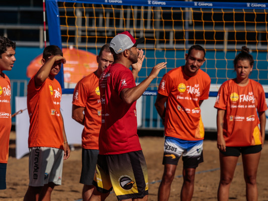 Tetracampeão Anderson Águia dá aula de futevôlei na Arena Esporte Verão