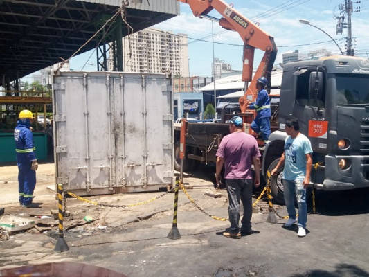 Os dois contêineres que recebem descartes de hortifrúti e de pescados contarão com base adequada e rede de captação dos resíduos fluidos para destinação direta na Estação de Tratamento de Esgoto.