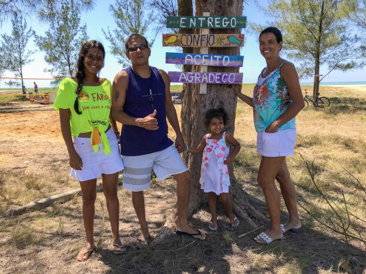 Família inspira veranistas pela orla do Farol com placas feitas à mão