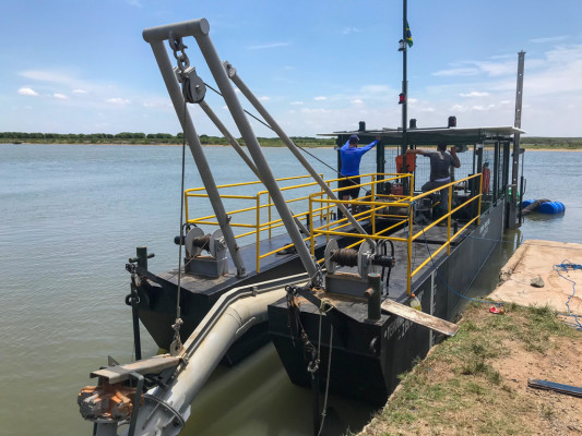 Equipamento chegou na última semana e começou a operar nessa terça-feira (26). Draga flutuante foi enviada pela Petrobras como compensação ambiental aos impactos na atividade pesqueira.