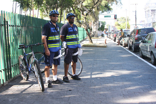 A Guarda Municipal está atuando com uma dupla de ciclistas na Praça do Jardim São Benedito. De acordo com o comandante do órgão, Francisco Melo, a dupla atua de segunda à sexta-feira, entre 14h e 22h, em pontos estratégicos em volta à praça. “Estamos atuando em todo contorno da praça, inclusive, em volta da Igreja São Benedito. Recebemos muitas reclamações de assaltos e pequenos furtos na área. Por isso, os ciclistas atuam para passar um sentimento de tranqüilidade e segurança para a população”, ressalta Francisco Melo.