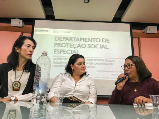 Além da vice-prefeita e da diretora de Proteção Social Especial da SMDHS, participaram da mesa de debate a secretária executiva do Conselho Estadual dos Direitos da Mulher (CEDIM), Edna Calheiros; a presidente em exercício do Conselho Municipal dos Direitos da Mulher (Comdim), Lívia Motta, e a advogada da Superintendência de Justiça e Assistência Judiciária, Aline Solino.