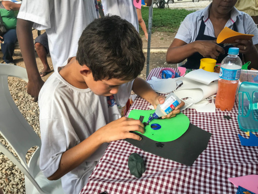 Oficinas de grafite e de confete ecológico atraem a criançada no Jardim do Liceu