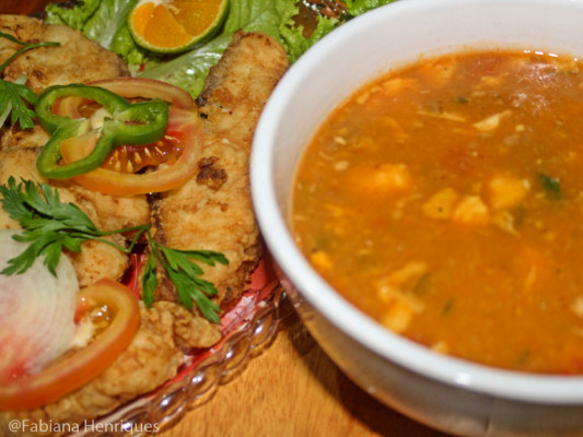 Prato: Torresmo de traíra ao molho de peixe especial.