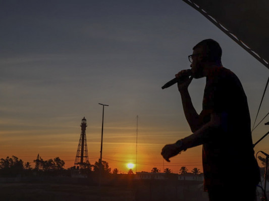 A noite de domingo começou com o grupo Copo Cheio no palco, cantando músicas autorais e de artistas de renome nacional, com um grande repertório.