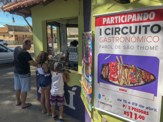 O 1º Circuito Gastronômico do Farol de São Thomé continuou nesta segunda-feira (22) movimentado a praia de Campos e a aquecendo a economia local. O evento que acontece no feriado prolongado de Semana Santa e Dia de São Jorge, faz parte do Festival de Outono de Campos e é realizado em parceria entre Prefeitura de Campos e Associação de Comerciantes, Hoteleiros e Similares de Farol de São Thomé (Aschom).