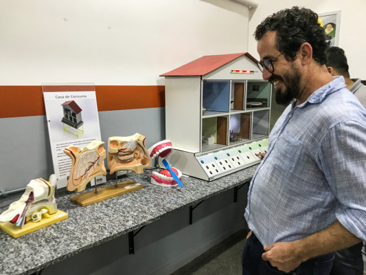 O secretário de Educação, Brand Arenari, acompanhou os pesquisadores na visita à primeira escola integral de Campos