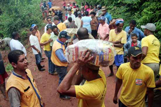 Homens da Defesa Civil distribuíram as cestas de alimentos às famílias cadastradas pelas assistentes sociais. Algumas pessoas passaram por atendimento médico na ambulância da secretaria de Saúde e solicitaram medicamentos de uso contínuo. O comandante da Defesa Civil informou que solicitará também uma unidade do programa Emergência em Casa para permanecer no local, pois há um grande número de idosos que dependem de atendimento.