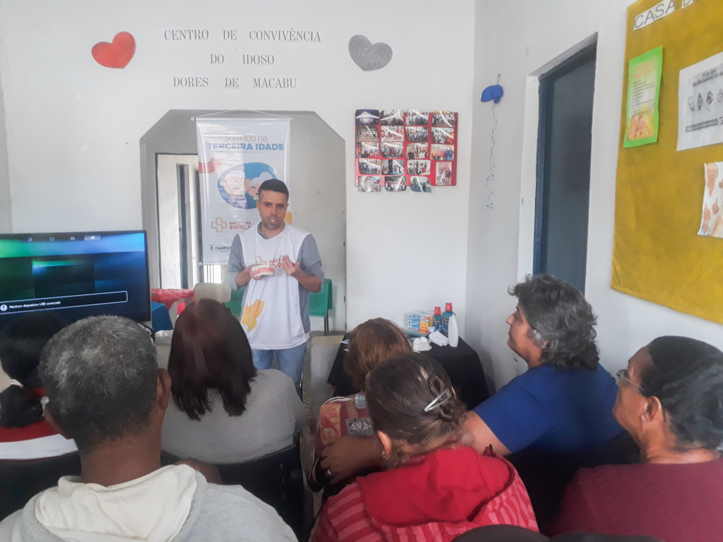 As palestras são ministradas pelo dentista voluntário do Programa Saúde na Escola João Paulo Oliveira e percorrem as unidades da Superintendência do Envelhecimento Saudável e Ativo.